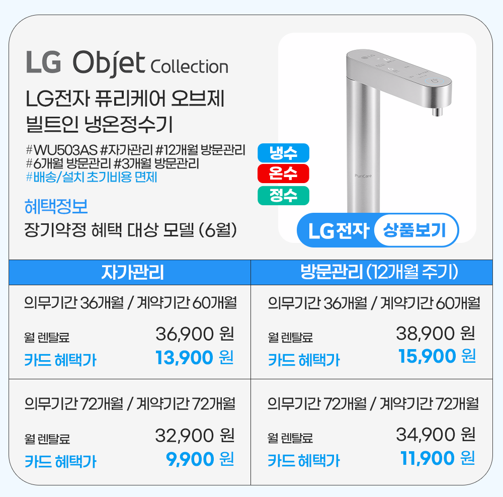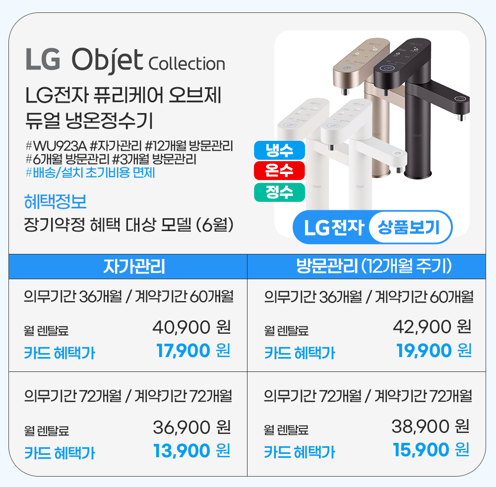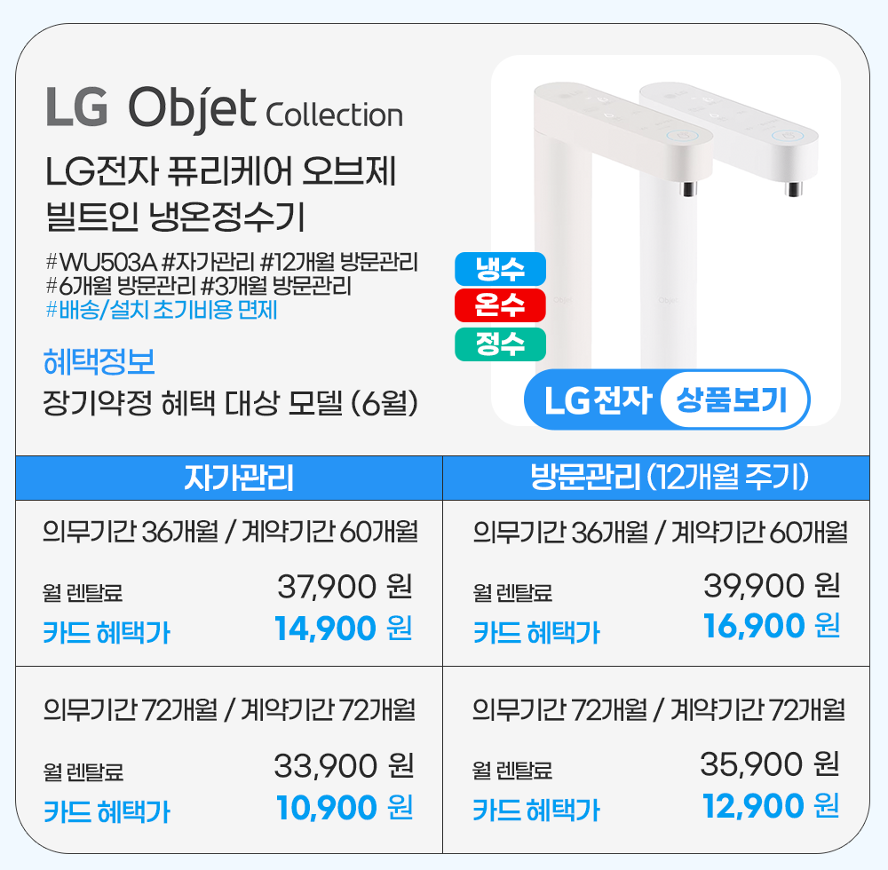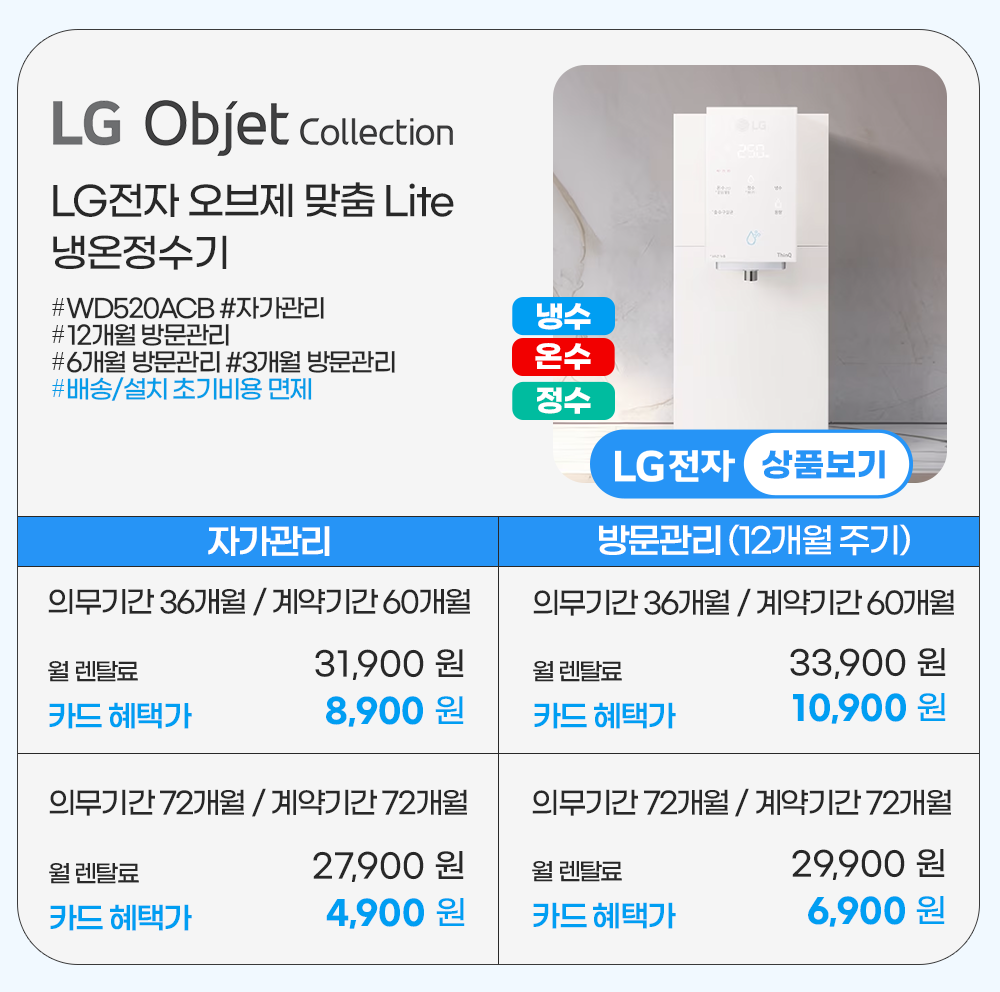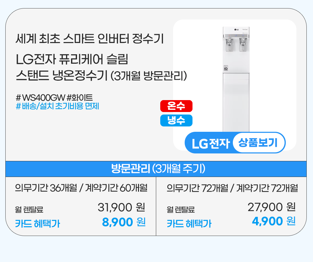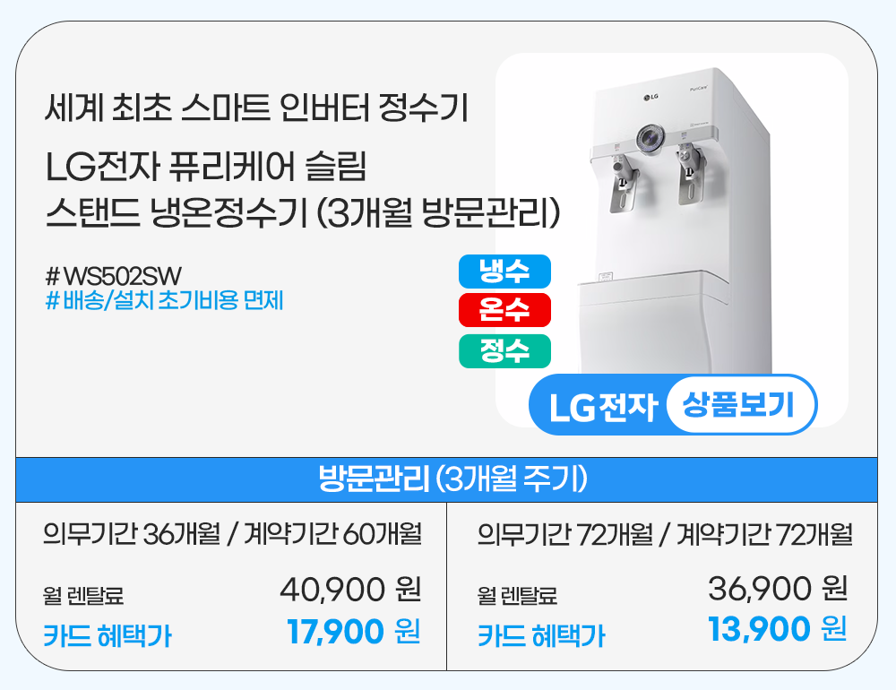 홈페이지 상담 및 렌탈 구매 필수 이름, 휴대폰번호, 주소 (우편번호, 상세주소) 렌탈 신청에 따른 고객 상담 및 렌탈구매 3개월