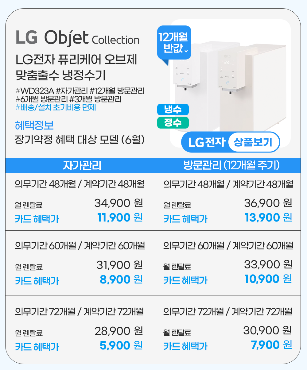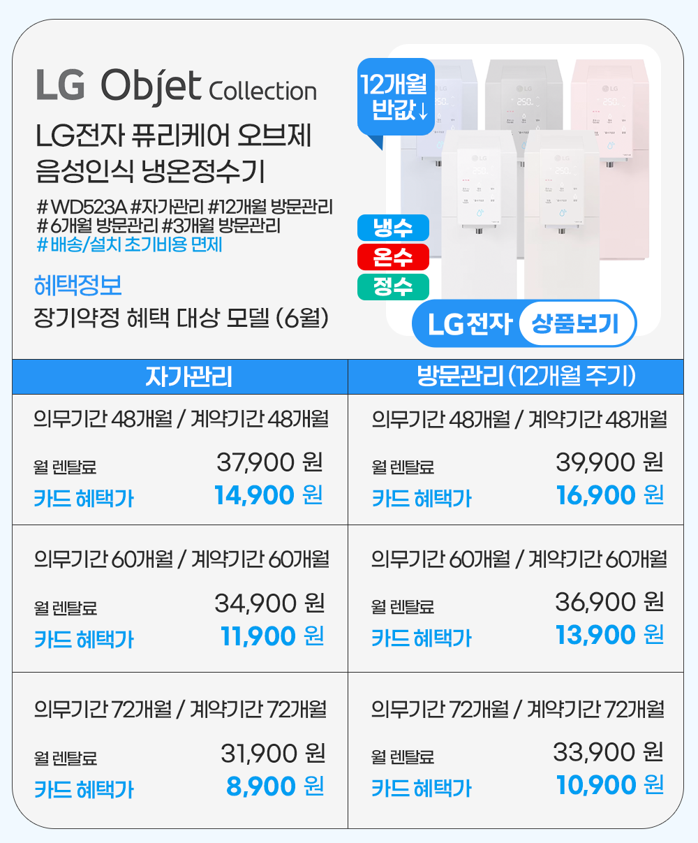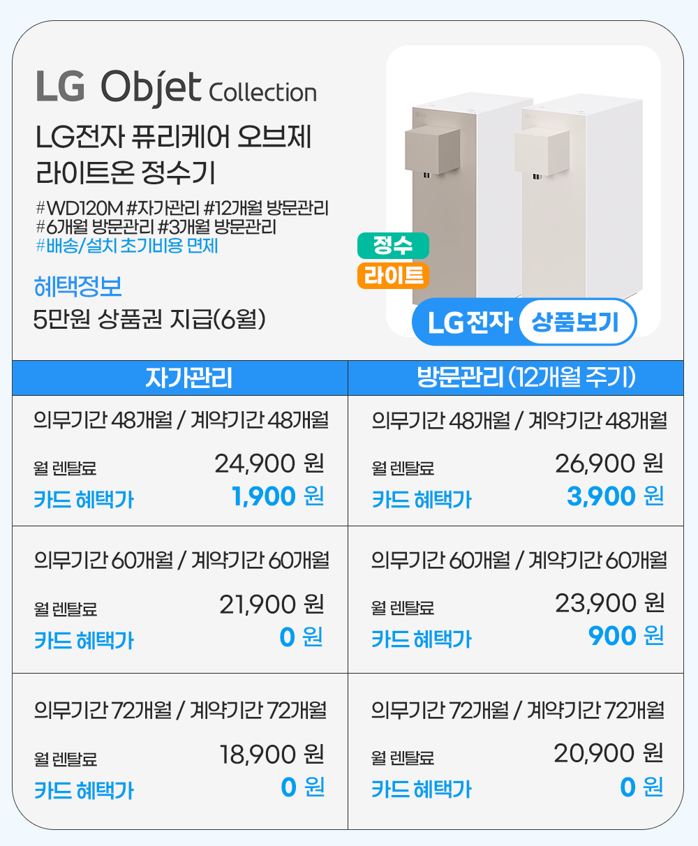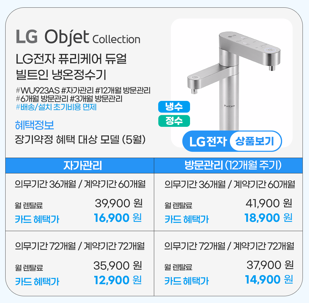 홈페이지 상담 및 렌탈 구매 필수 이름, 휴대폰번호, 주소 (우편번호, 상세주소) 렌탈 신청에 따른 고객 상담 및 렌탈구매 3개월