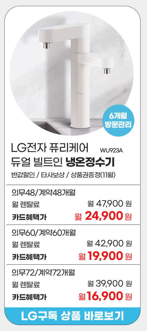 홈페이지 상담 및 렌탈 구매 필수 이름, 휴대폰번호, 주소 (우편번호, 상세주소) 렌탈 신청에 따른 고객 상담 및 렌탈구매 3개월